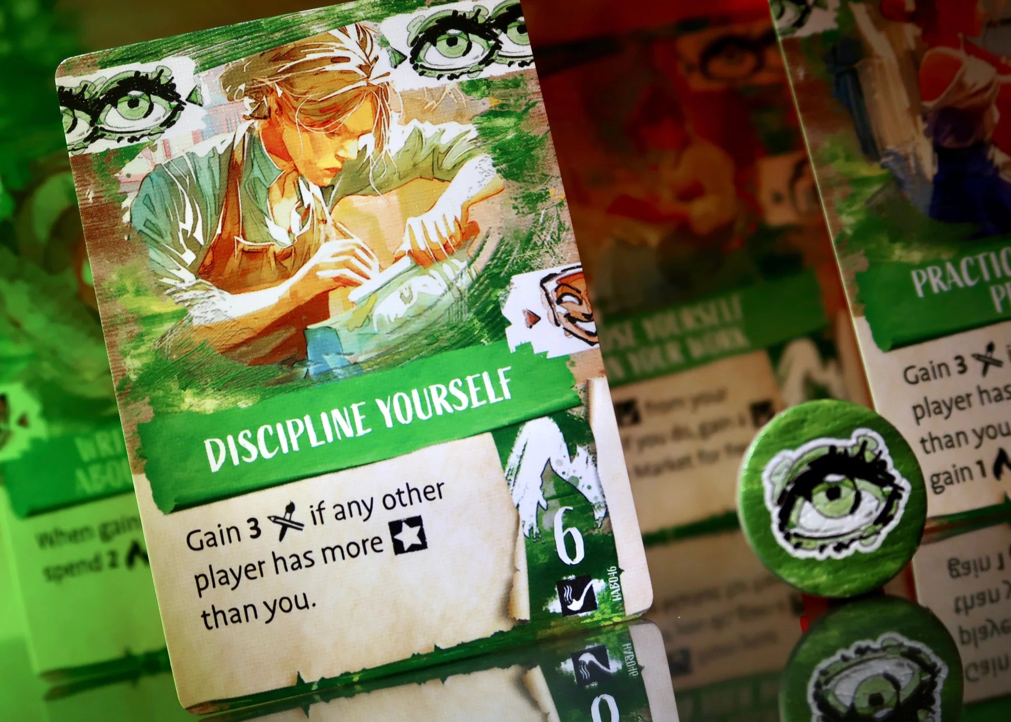 In each round, players must plan that day's routine and decide whether they will go on a date, participate in a social event, meet their muse, create new art, or...go to work.