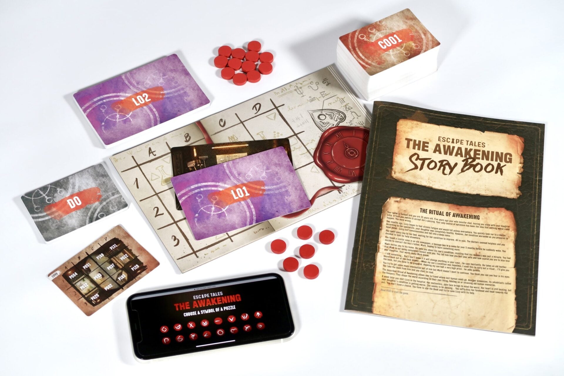 Escape Tales: The Awakening is a story driven escape room in card game form, with immersive exploration, no time limits when solving puzzles, and a collection of tough choices that will captivate and immerse you deeply. As for the story, here’s the set-up: