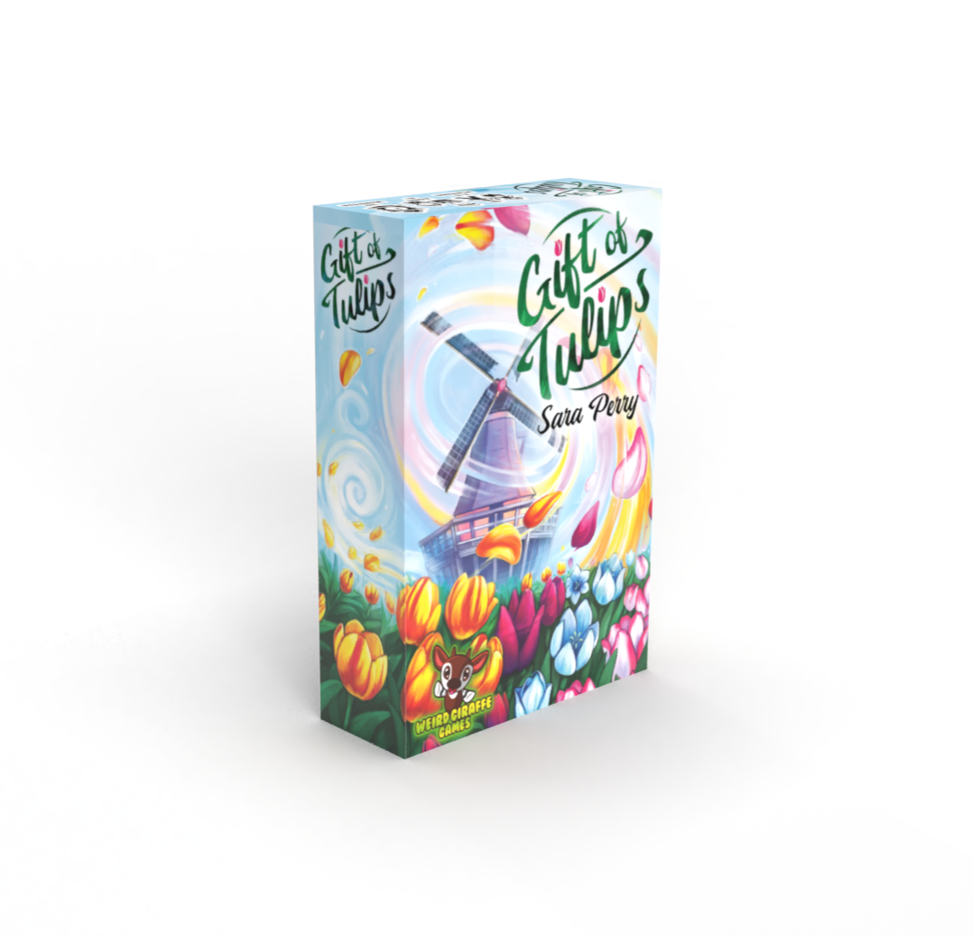 In Gift of Tulips, tulip enthusiasts explore Amsterdam’s tulip festival to build colorful bouquets. Players can change the value of different tulips by playing into the Tulip Market, gain points by giving Tulips to other players, or build up their own Bouquet, which is scored at the end of the game