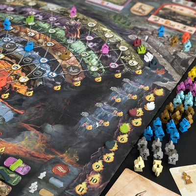 Inferno is a worker placement/ soul management game where each player must guide sinners to their respective circles in Hell. The central board consists of two parts: one displaying all 9 circles and the soul registry, while the other represents Florence in the early 14th century, where Dante lived, with its power games and palace intrigues.
