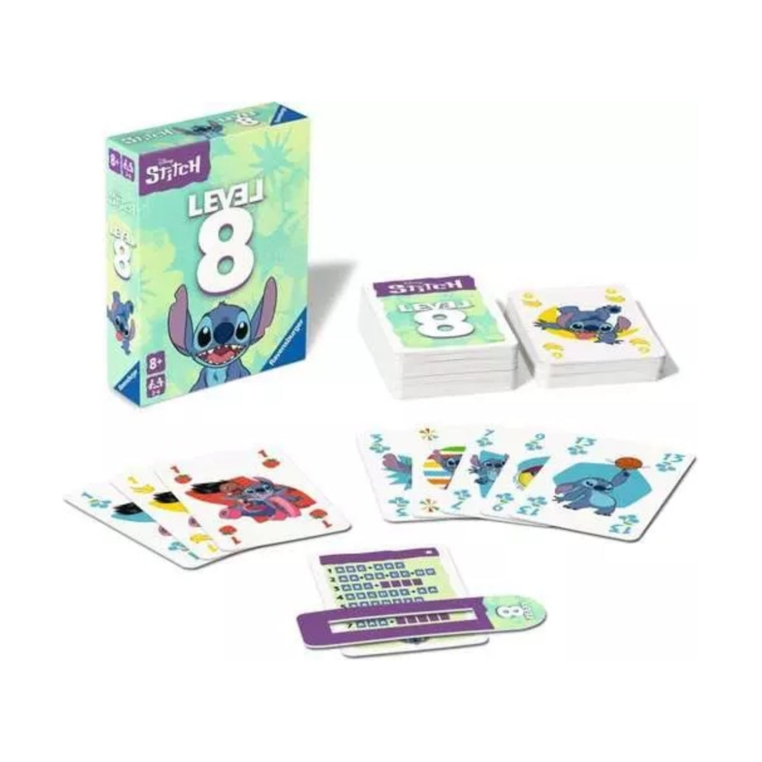 Level 8 - the card game with the Disney character Stitch as the main character: At the start, everyone receives a level card with eight tasks. Who can lay out the required combinations of number sequences, identical numbers and identical colours the fastest? This classic card game is a highlight for all Lilo and Stitch fans aged 8 and up. Simple rules, quick decisions, great fun!