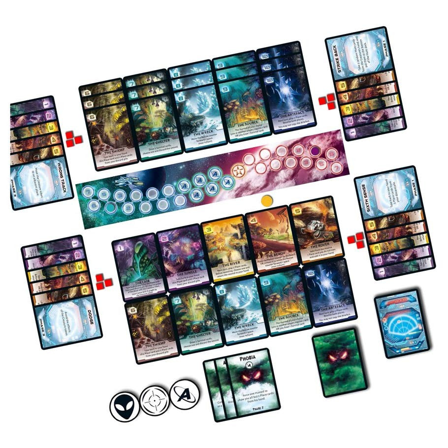 If you play as one of the Hunted, you will explore Artemia using Place cards. By playing these and Survival cards, you try to avoid, confuse or distract the Creature until help arrives.