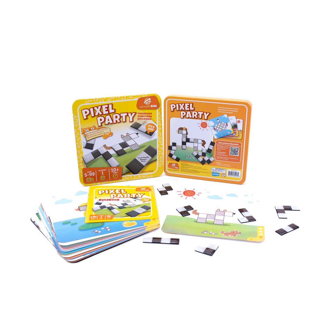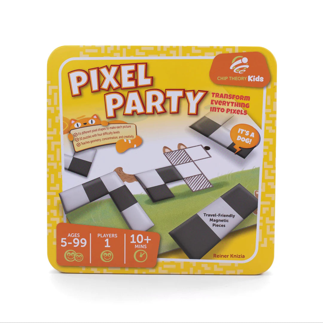 Every animal, object, vehicle, and building in Pixel Party is a pixel puzzle. You have to use seven special pixel polyominoes—different collections of black and white squares—to cover the puzzle. With four difficulty levels and the requirement to always alternate black and white, the puzzles become more challenging quickly!