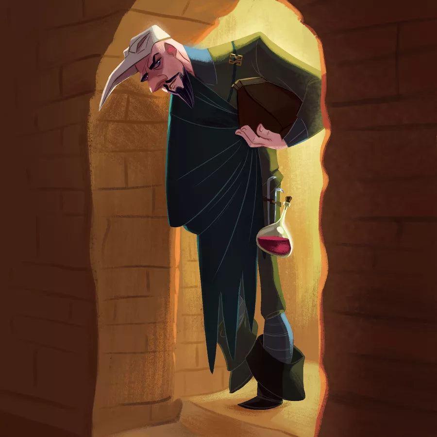 Players perform actions for themselves and their enemies as cubes fall out of the tower. Cubes may fall directly down, or become dislodged only to fall out on a future turn. Some cubes may even fall into the crypt, where they will count double.