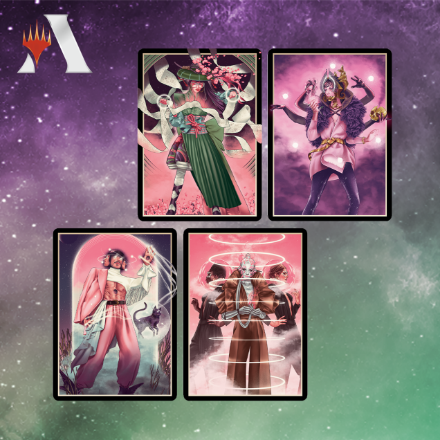 When Magic and fashion collide, ‘Modern’ is more than just a format—it’s a way of life. Get the most on-trend looks for your deck or collection with these sharply dressed Borderless cards by illustrator Jack Hughes. Bursting with bold pastels, avant-garde asymmetry, and unconventional composition, each piece you throw down turns the playmat into the catwalk. The only fashion faux pas you can make with this set? Going sleeveless.