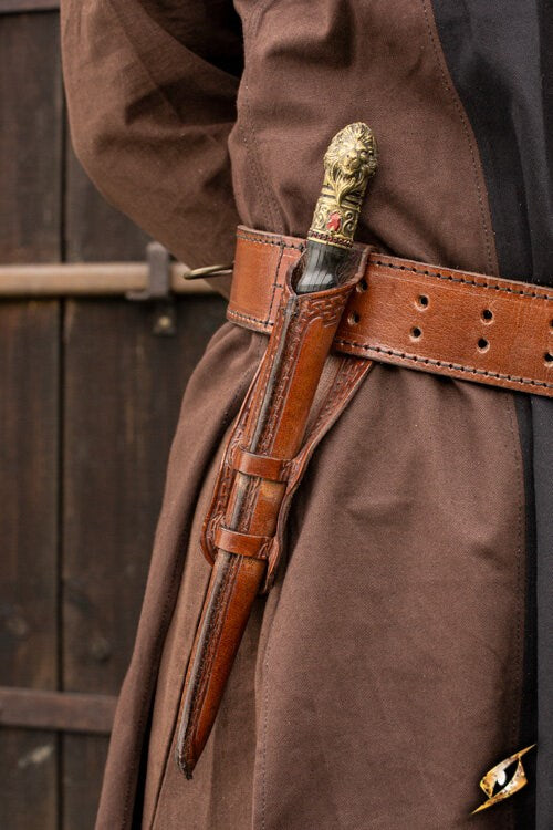 Even the mightiest of magicians need to protect their weapon of choice. Made from full grain leather this Epic Armoury Wand Sheath will keep your wand protected for any LARP occasion and will make a perfect addition to any witch or wizard's outfit. At 29 cm. it will fit Epic Armoury's own line of wands and most other, and can easily be customized whether you are a Viking Seeress or off to Wizard School. Features an adjustable belt loop to keep your wand on your hip and at the ready to cast spells and perform magic. Available in colours Brown and Black.
