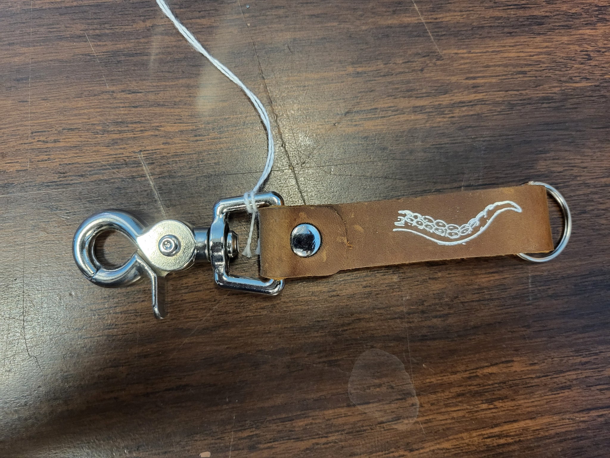 Grimbeard Leather: Keychain - Leather - Swivel Clip - Tentacle - Brown with Silver