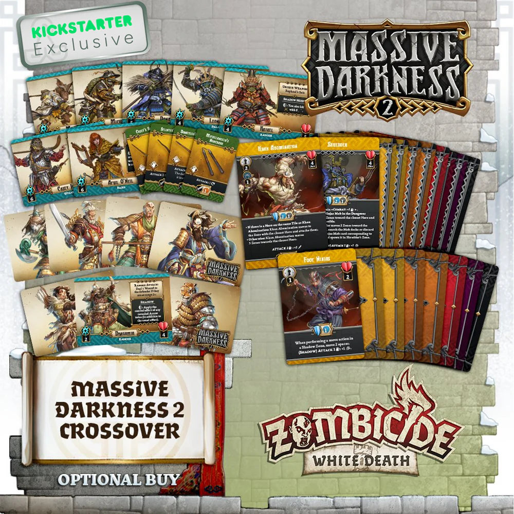 This Kickstarter Exclusive Optional Buy gives you the opportunity to bring non-exclusive Survivors and Zombies introduced in the Zombicide: White Death Kickstarter into Massive Darkness 2!