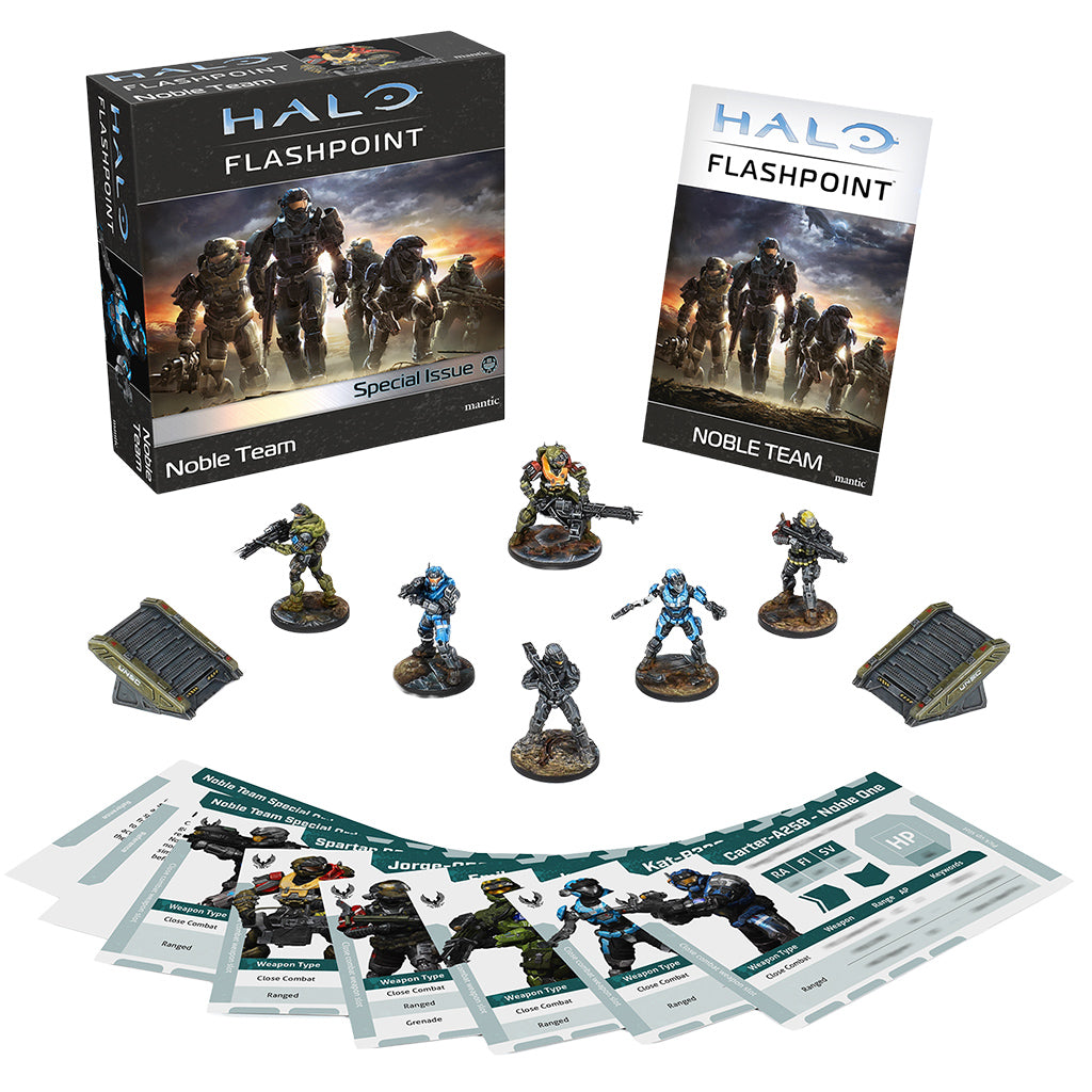 Legends Never Die - The Noble Team Expansion features six Legendary Character miniatures made from high-detail MasterCraft Resin, and includes all their Character and Special Order Reference cards. Includes New Interactive Scenery - Launch your Fireteam across the combat zone with a pair of UNSC Man Cannons! These hand-cast scenery pieces feature in brand new scenarios contained within the included Noble Team Expansion booklet. Bigger Battles Than Ever Before - The Noble Team Expansion Booklet introduces the new double-mat game format to Halo: Flashpoint, complete with new rules and scenarios. These can be played by either combining two single Halo: Flashpoint boards or mats, or on the new doublesize Reach neoprene gaming mat.