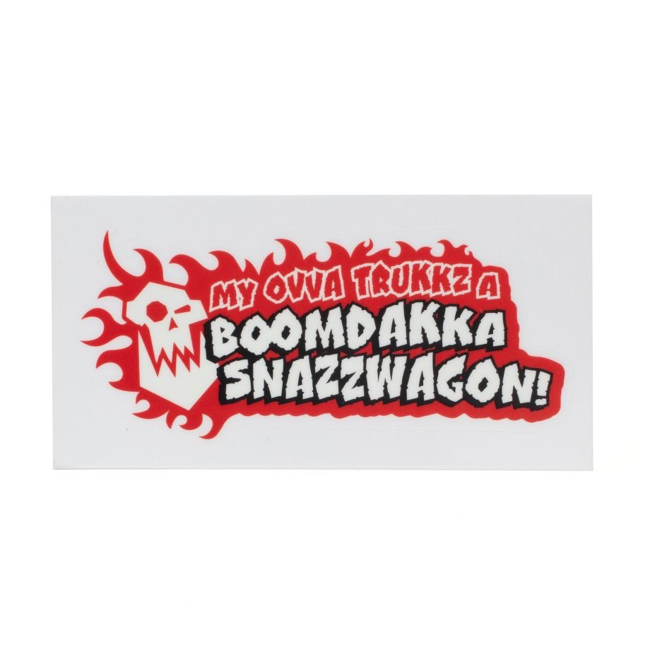 Also included is a sticker for your car window that lets the whole world know that your other ride is a Boomdakka Snazzwagon, plus a leather-effect drawstring pouch containing six very Orky objective markers – teef inscribed with the numbers one to six!
