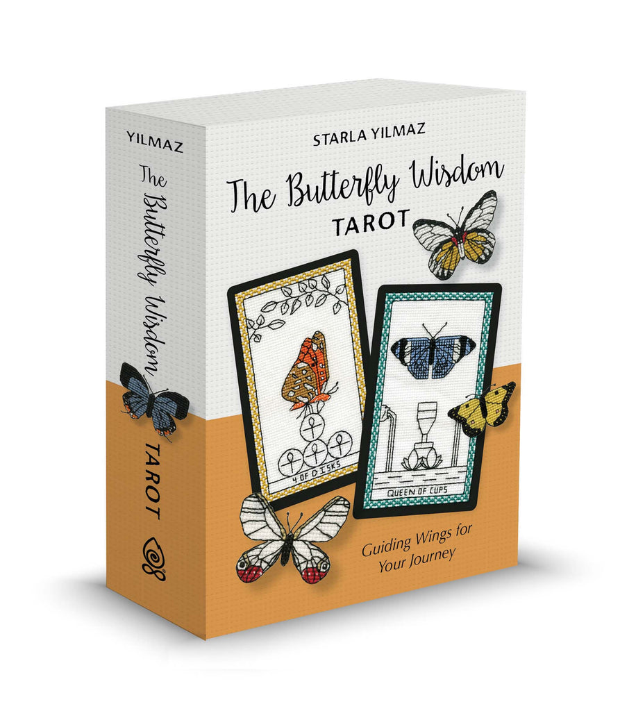 Perfect for life’s transformative periods, The Butterfly Wisdom Tarot is a gentle companion ready to guide your insights and uplift your spirits. Based on the classic Rider-Waite-Smith system, this charming deck features 78 intricately cross-stitched butterfly designs.