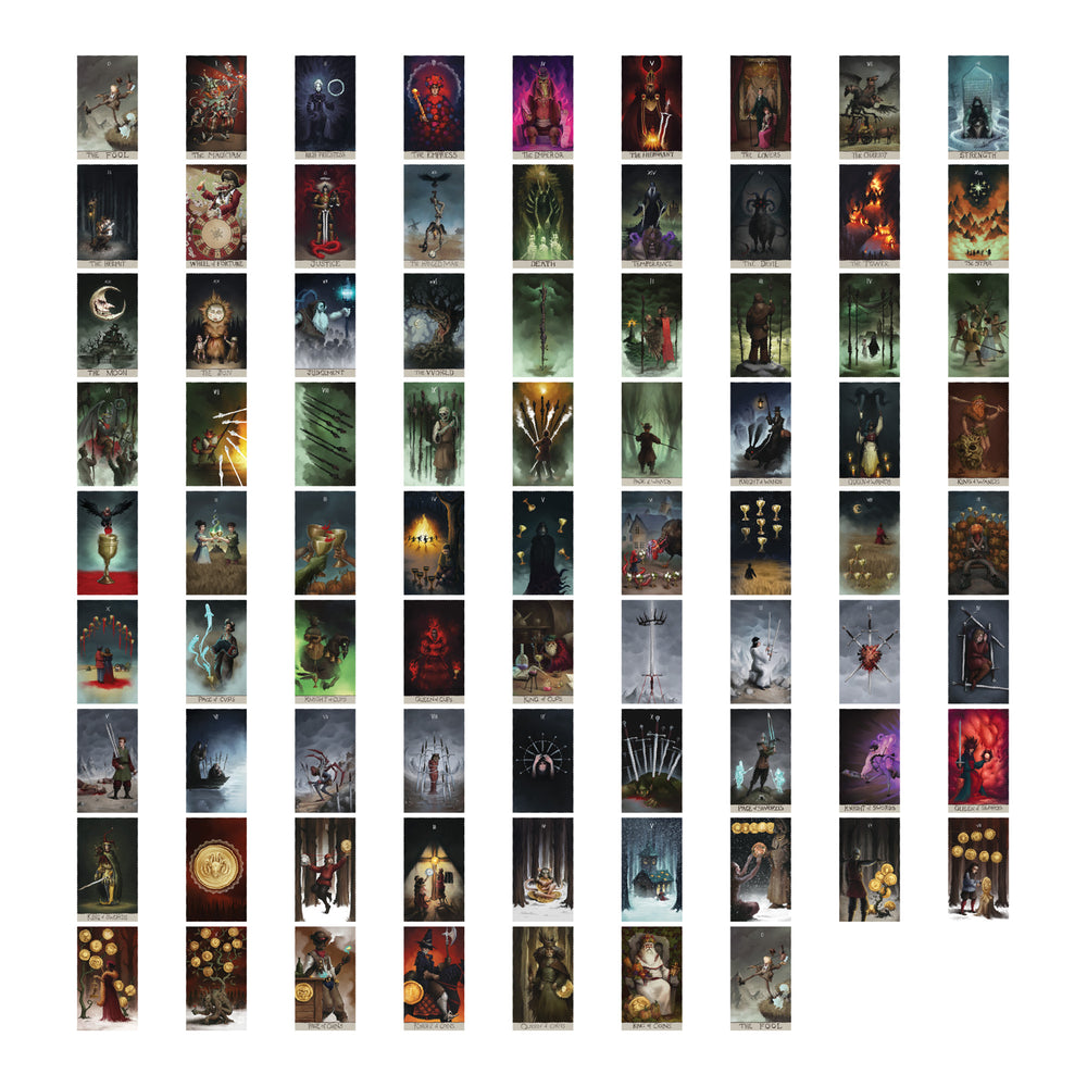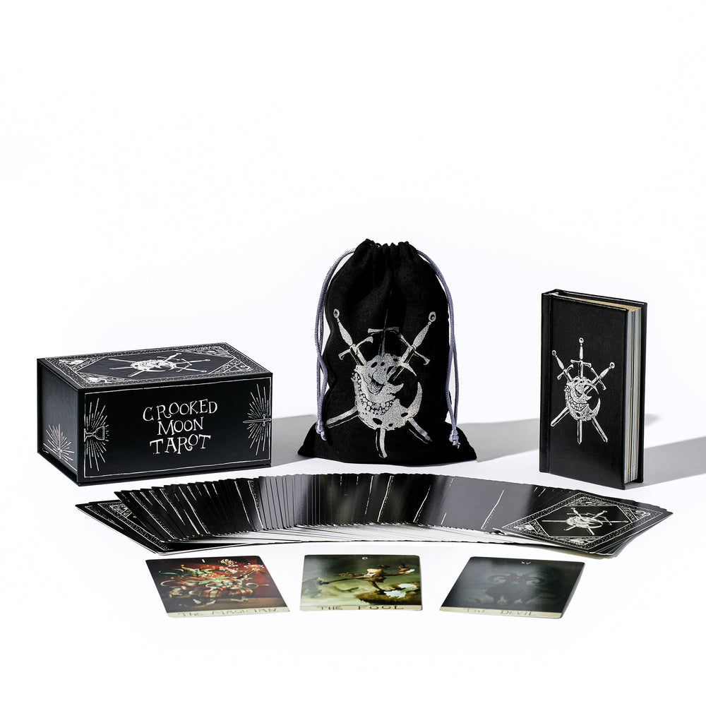 - 78 premium tarot cards with hauntingly beautiful art inspired by the Crooked Moon
