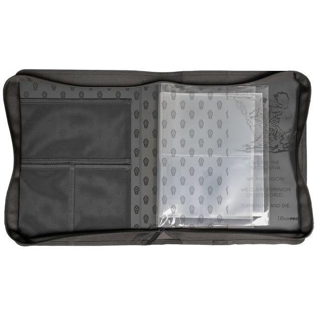 - Textured leatherette cover features foil Necrons Warrior, Necrons symbol and faction emblems, with a spot UV Necrons Warrior on the interior