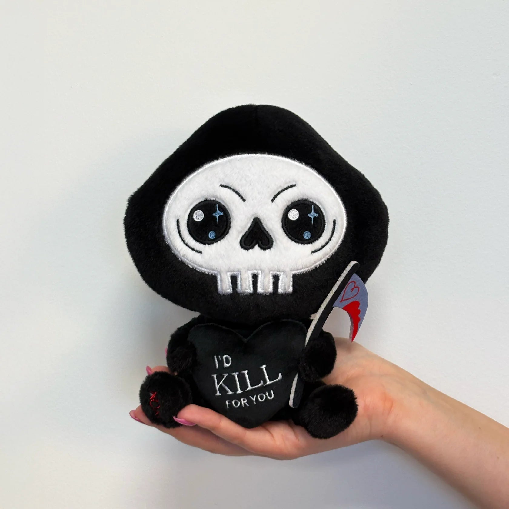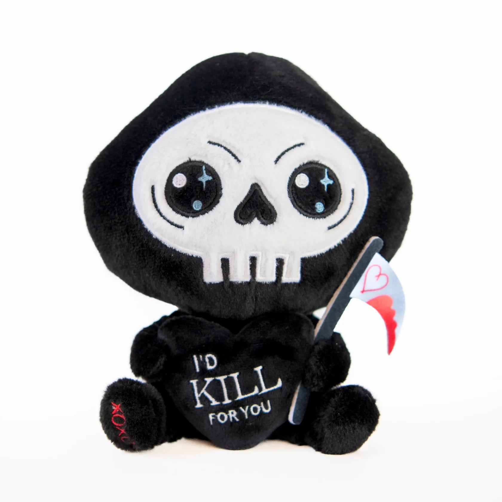 Nothing says “till death do us part” like our Grim Reaper plushie! This anti-hero is a unique way to tell anyone you’re dying to make them happy and maybe, just possibly, kill for them. His sparkling eyes, bloody scythe, and embroidered details make this plushie GRAVEly irresistible. Bereave us, he’d make a wonderful gift for your soulmate, especially during Valentine’s Day!