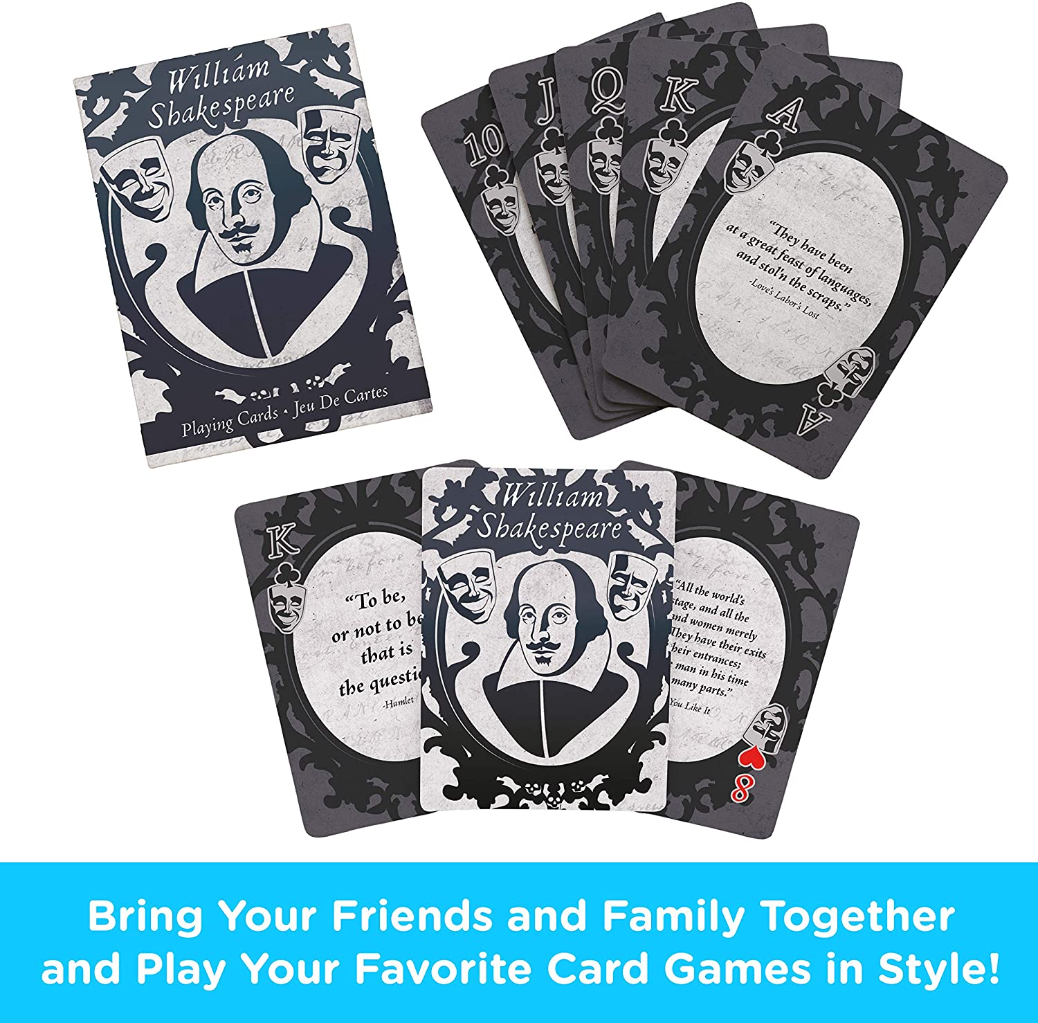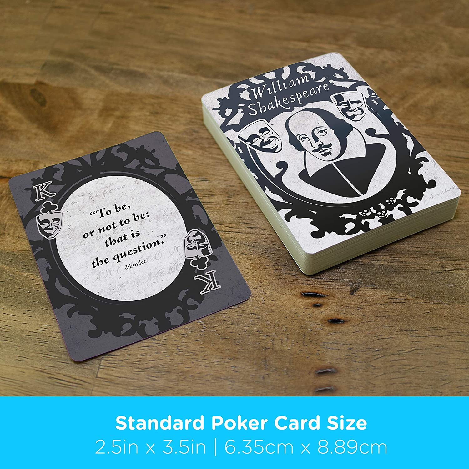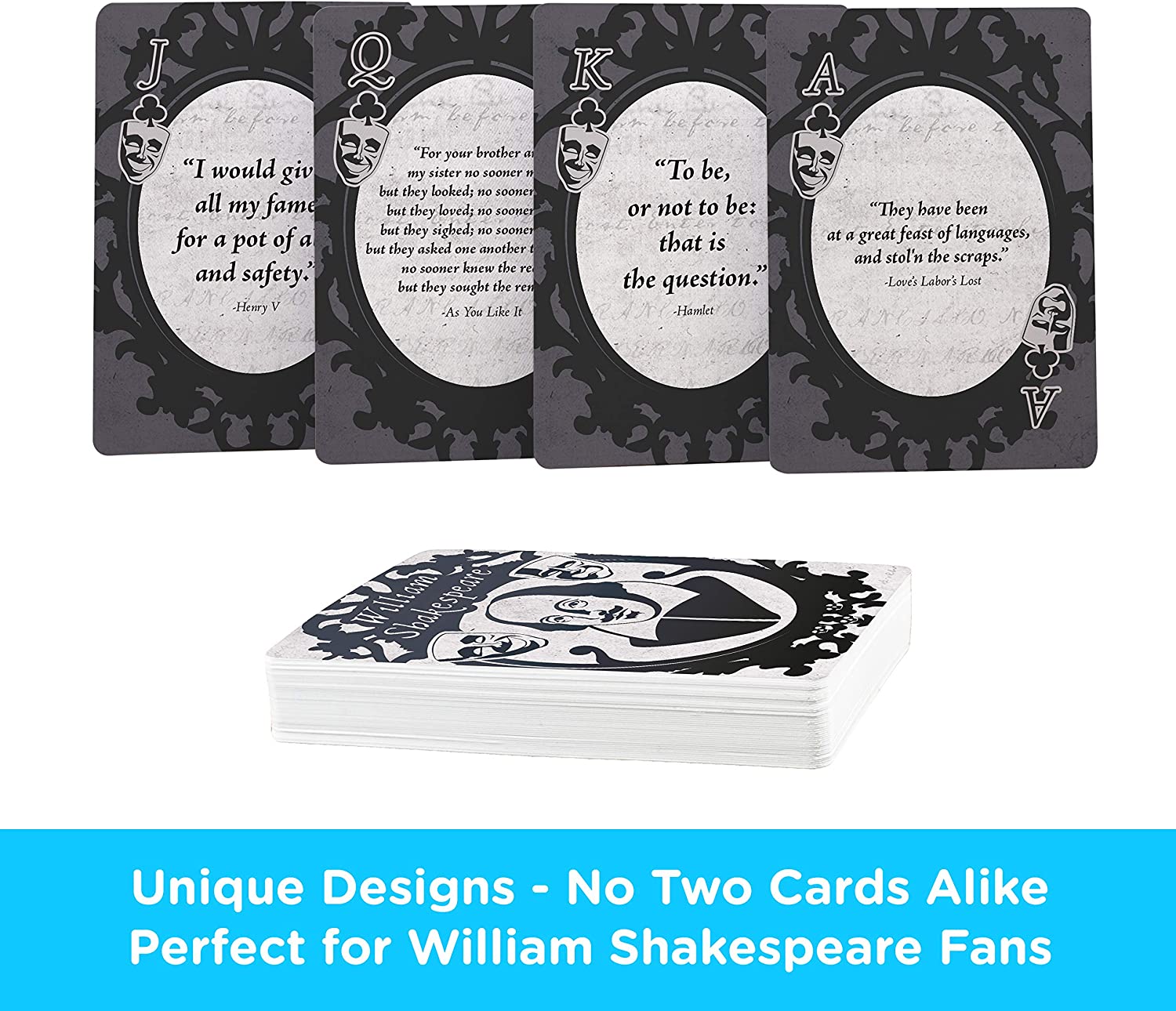 Playwright and poet, William Shakespeare’s words have been cited and read for centuries. This deck of playing cards features quotes from the world famous bar.