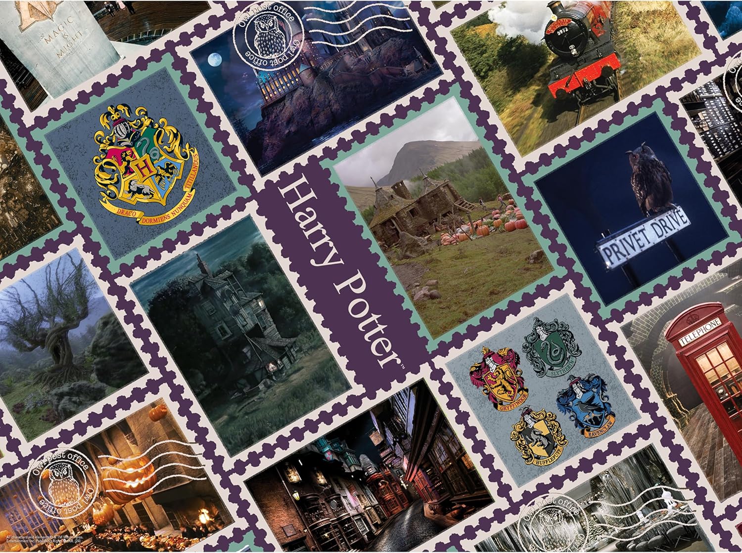 HARRY POTTER TRAVEL STAMPS 500 PIECE JIGSAW PUZZLE: Enjoy piecing together this 500 piece puzzle spotlighting the travel destinations of Harry Potter.