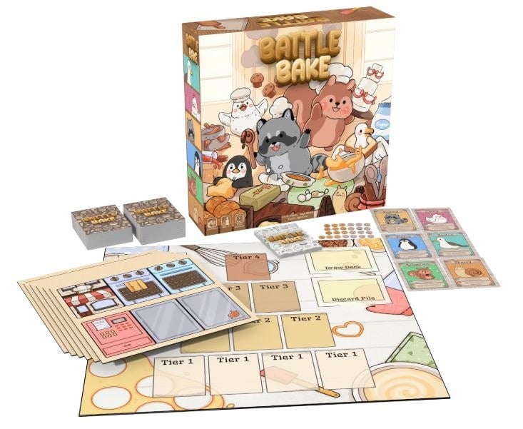 Start each turn by rejuvenating your pantry with new ingredients. Players will then use action points to prepare, bake, present, and sell their delicious desserts. Amid the baking chaos, players will have the opportunity to sabotage other players or improve their own position through the power of effect cards. Each character also has a unique set of abilities which will influence their strategy during the game.