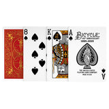 The United States Playing Card Company is proud to present our Bicycle 140th Anniversary Playing Cards. To celebrate their storied heritage, US Playing Card Co. blended classic style with modern technology. Beautiful gold Metalluxe glimmers on both the tuck and card backs, while vintage court cards and historic aces evoke a nostalgic blast from the past.