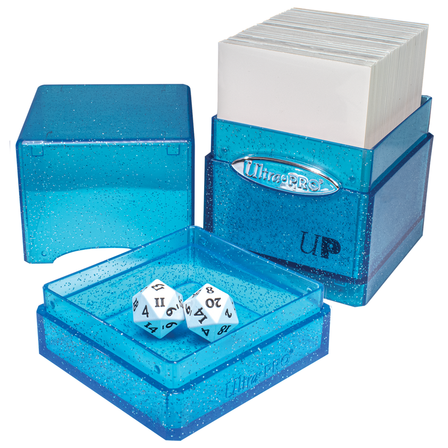 The Satin Tower is Ultra PRO’s best selling Deck Box®! The durable, injection molded plastic shell is designed to store and protect 100+ standard size trading cards in Ultra PRO Deck Protector® sleeves and includes a spacious bottom compartment for dice, coins, or life counters. The unique snap-fit locking mechanism keeps your valuable cards and components securely stored. This Satin Tower features a Glitter finish, but Satin Tower is also available with Hi-Gloss and Classic Satin finishes! Collect them all!