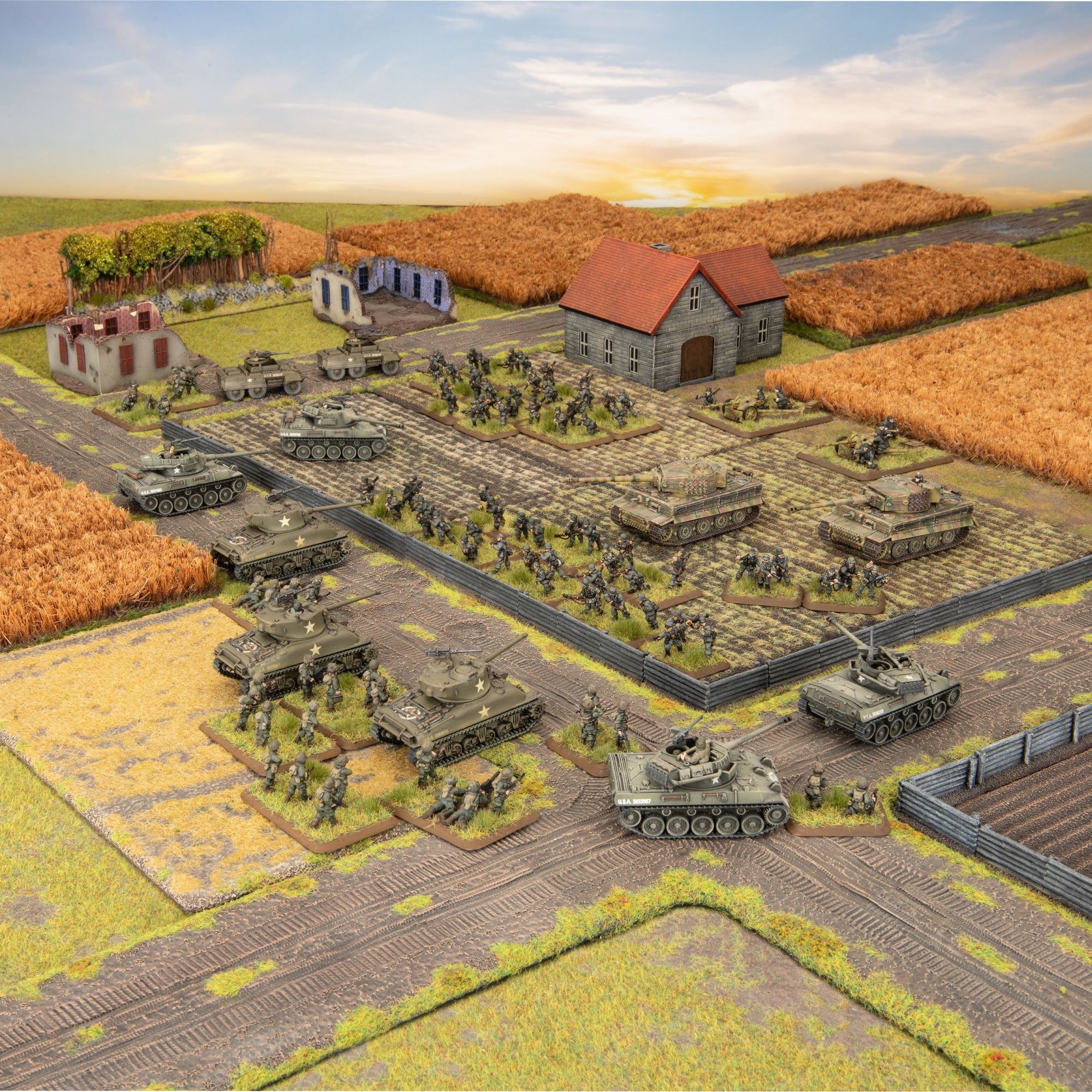 With a thunderous crash another shell smashes into the wall above you, showering your trench with rubble. Looking around, your entire position resembles a cauldon of fire - every roof ablaze, black smoke billowing into the night sky. As the echo of the blast dies away, the crack of rifle fire breaks out, and an ominous clanking and rumbling... Suddenly, out of the flames roars a Tiger tank!