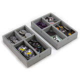 This insert is designed to be compatible with Eclipse®, and includes space for the Ship Pack One® expansion. The design provides both efficient storage and improved game play. Many of the trays can be utilized during the game, and they greatly aid set-up and clear-away times. The boards and player boards act as a lid on top of the trays.