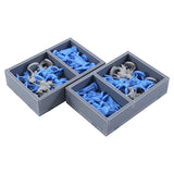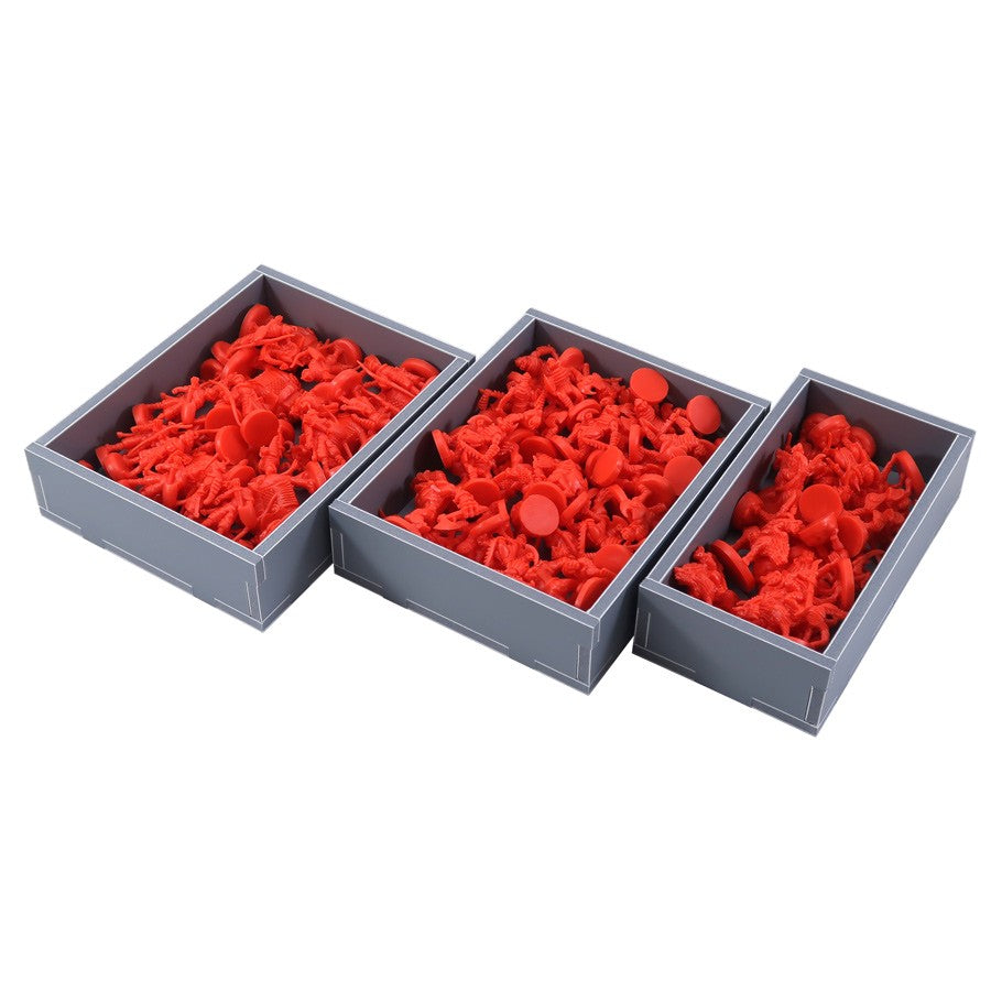 Insert compatible with War of the Ring®, and the Lords of Middle-Earth®, and Warriors of Middle-Earth® expansions. The design provides both efficient storage and improved game play. Many of the trays can be utilized during the game, and they greatly aid set-up and clear-away times. The board and rule books act as a lid on top of the trays.