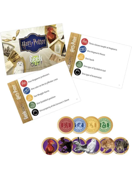 Geek Out! Harry Potter lets fans boast their expertise in magical topics to win. A six-sided die determines which of the five magical categories the question will address. The categories are: