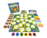 In more detail, players move the twelve echidnas from leaf to leaf, picking up bugs in their color from their pick-up leaf, and moving them to the three matching-colored stumps. But the forest floor is a traffic jam of echidnas that have to be moved out of the way before you can get there. The first player to deliver all three bugs wins.