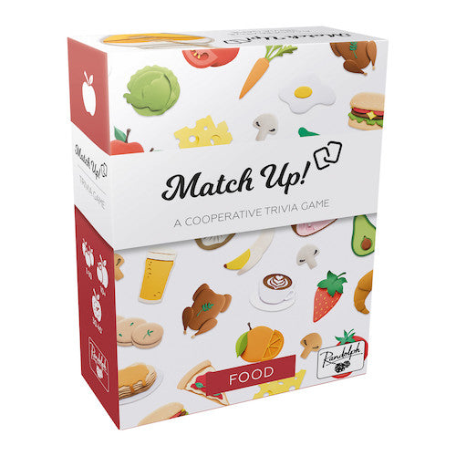 Match Up! Food is a cooperative trivia game where players team up to find the key amongst the 50 cards featuring unique food art.