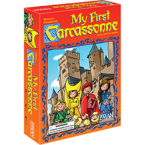 Designed for ages four and up, My First Carcassonne brings children into the fun of building the city of Carcassonne. It maintains the same core game design that makes the original Carcassonne a classic, while eliminating the need to count high scores. Place the tiles and as many of your pawns as you can. The streets will echo with laughter as animals are caught and returned home safely!