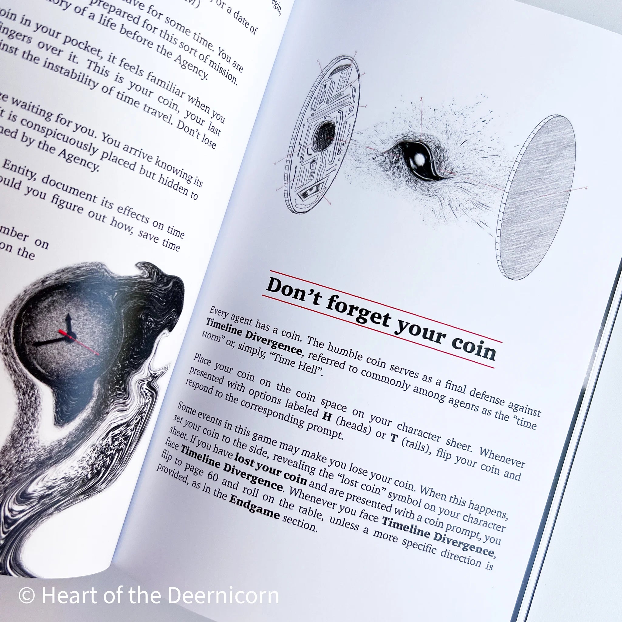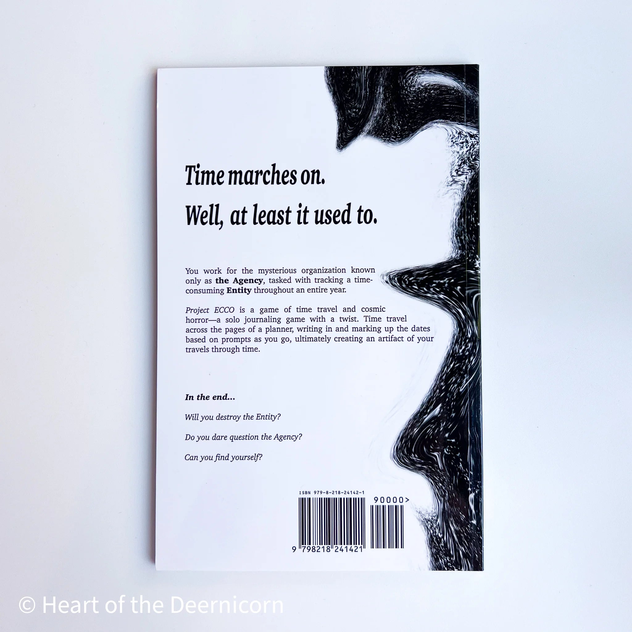 Project ECCO is a game of time travel and cosmic horror—a solo journaling game with a twist. Time travel across the pages of a planner, writing in and marking up the dates based on prompts as you go, ultimately creating an artifact of your travels through time. You work for the mysterious organization known only as The Agency, tasked with tracking a time-consuming entity throughout an entire year. In the end, will you destroy the Entity? Do you dare question the Agency? Can you find yourself?
