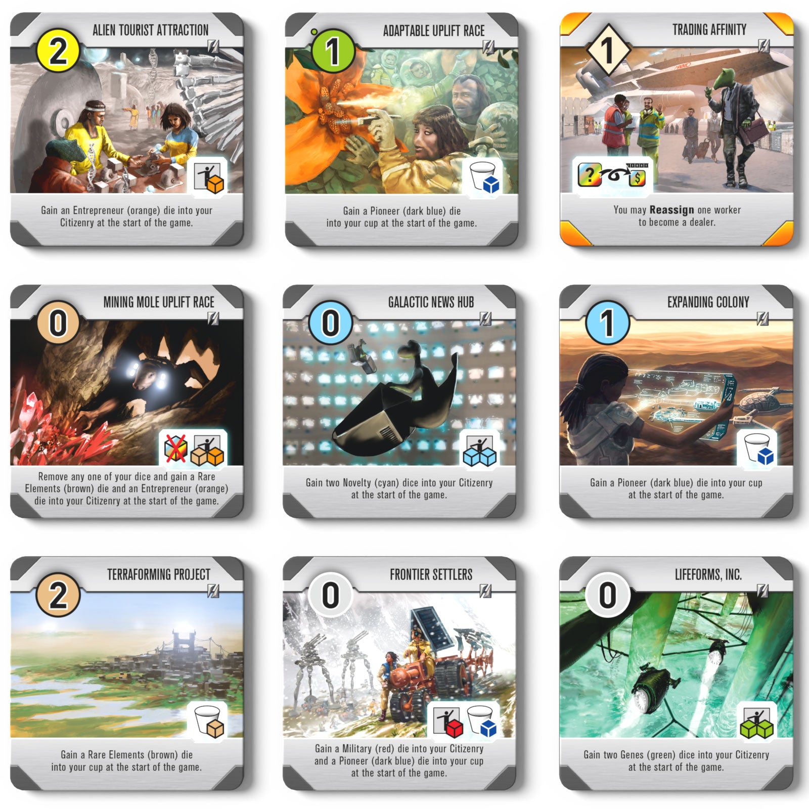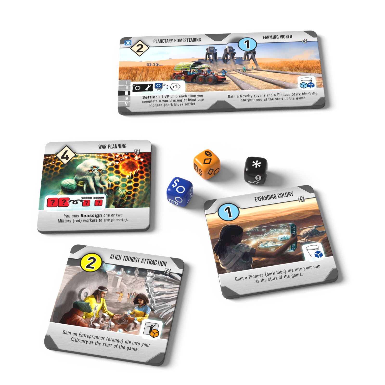 Roll for the Galaxy: Rivalry, the second expansion for Roll for the Galaxy, consists of three expansions in one box.