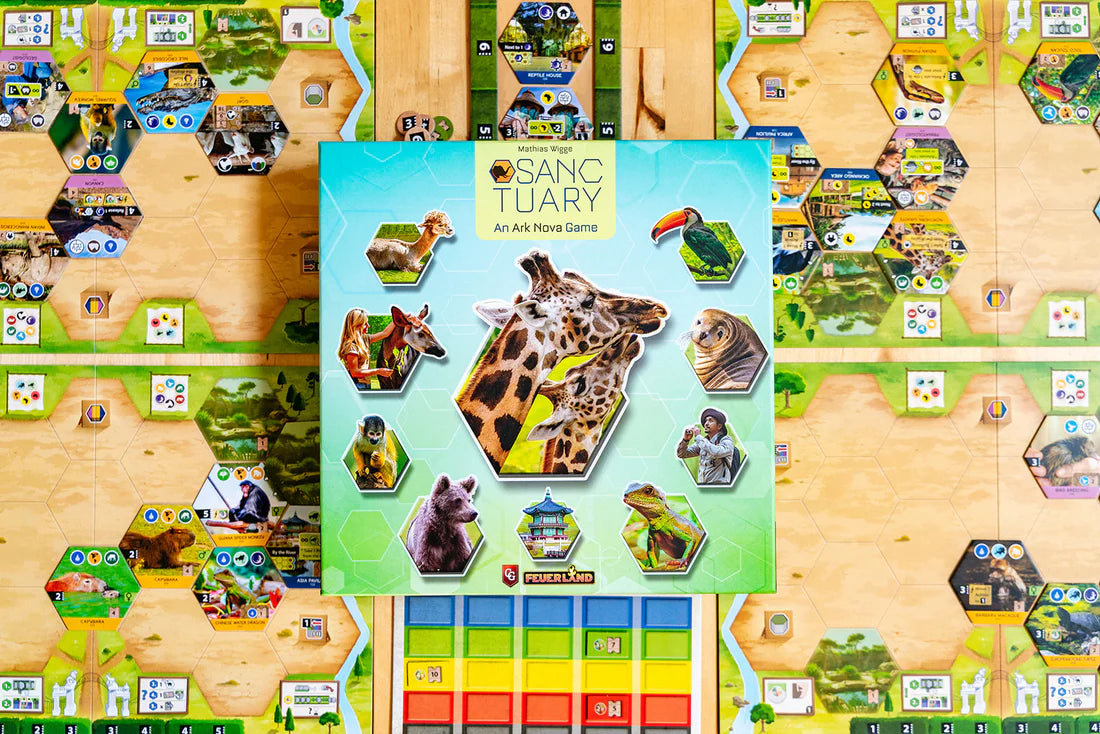 Sanctuary takes the core ideas of the global bestseller Ark Nova and refines them, offering a more streamlined yet equally engaging experience. The medium-weight game focuses on the exciting challenge of optimally placing animals, buildings, and projects within your zoo, ensuring every play is fresh and dynamic.