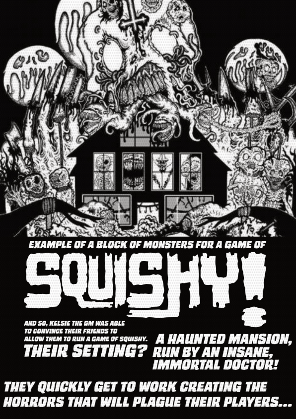 This is a d10 system and it’s designed to get you from zero to scary in no time flat! The most important part of this system is the super quick character creation, and everything beyond that is just a bunch of suggestions on how to flesh out your games.