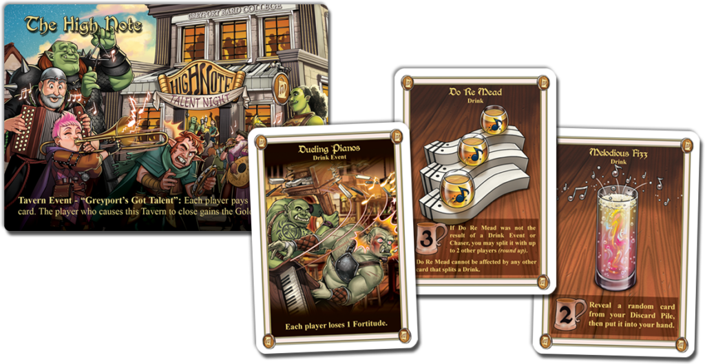 The High Note is designed to be played with the Pub Crawl Variant introduced in RDI 8. In that variant, instead of spending the entire night at the Red Dragon Inn, you hop around from one tavern to another, only returning to the RDI if you’ve literally closed down every other bar in town.